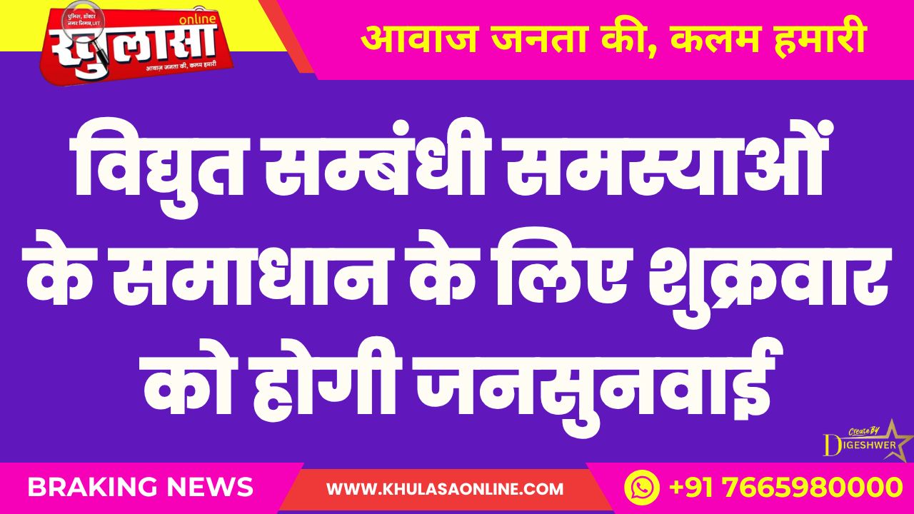 विद्युत सम्बंधी समस्याओं के समाधान के लिए शुक्रवार को होगी जनसुनवाई