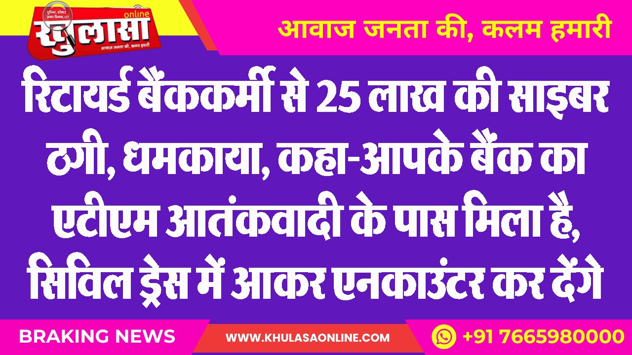 रिटायर्ड बैंककर्मी से 25 लाख की साइबर ठगी, धमकाया कहा-आपके बैंक का एटीएम आतंकवादी के पास मिला है, सिविल ड्रेस में आकर एनकाउंटर कर देंगे