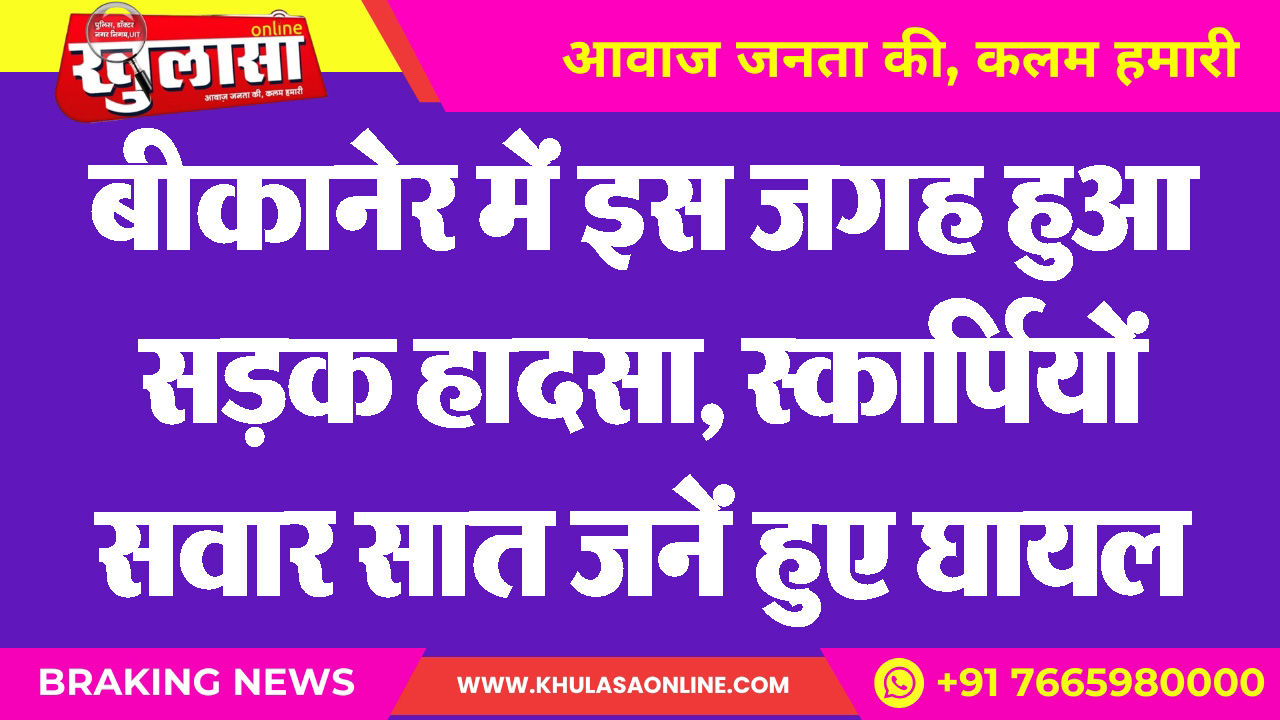 बीकानेर में इस जगह हुआ सडक़ हादसा, स्कार्पियों सवार सात जनें हुए घायल