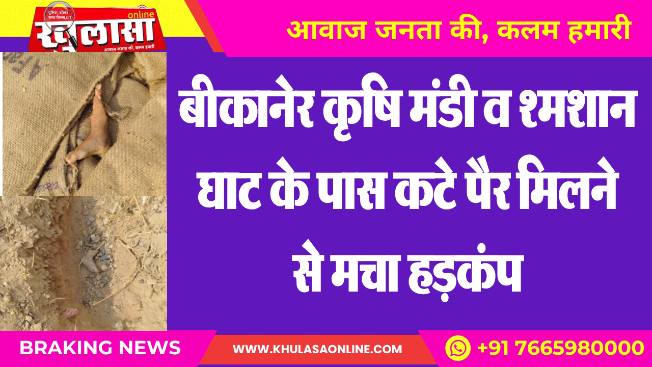 बीकानेर कृषि मंडी व श्मशान घाट के पास कटे पैर मिलने से मचा हडक़ंप