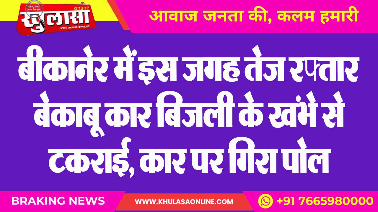 बीकानेर में इस जगह तेज रफ्तार बेकाबू कार बिजली के खंभे से टकराई, कार पर गिरा पोल
