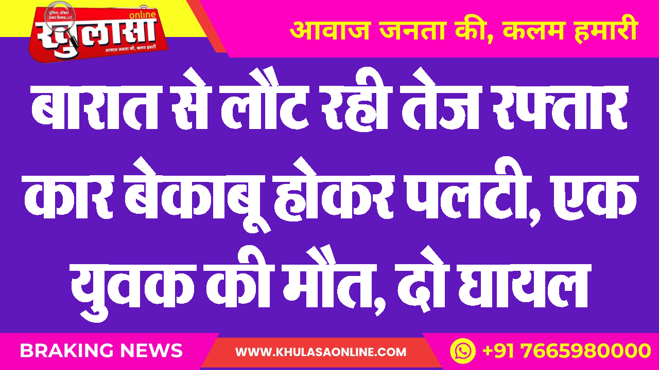 बारात से लौट रही तेज रफ्तार कार बेकाबू होकर पलटी, एक युवक की मौत, दो घायल