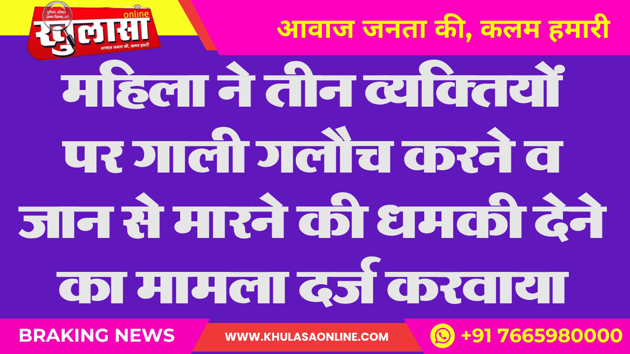 महिला ने तीन व्यक्तियों पर गाली गलौच करने व जान से मारने की धमकी देने का मामला दर्ज करवाया
