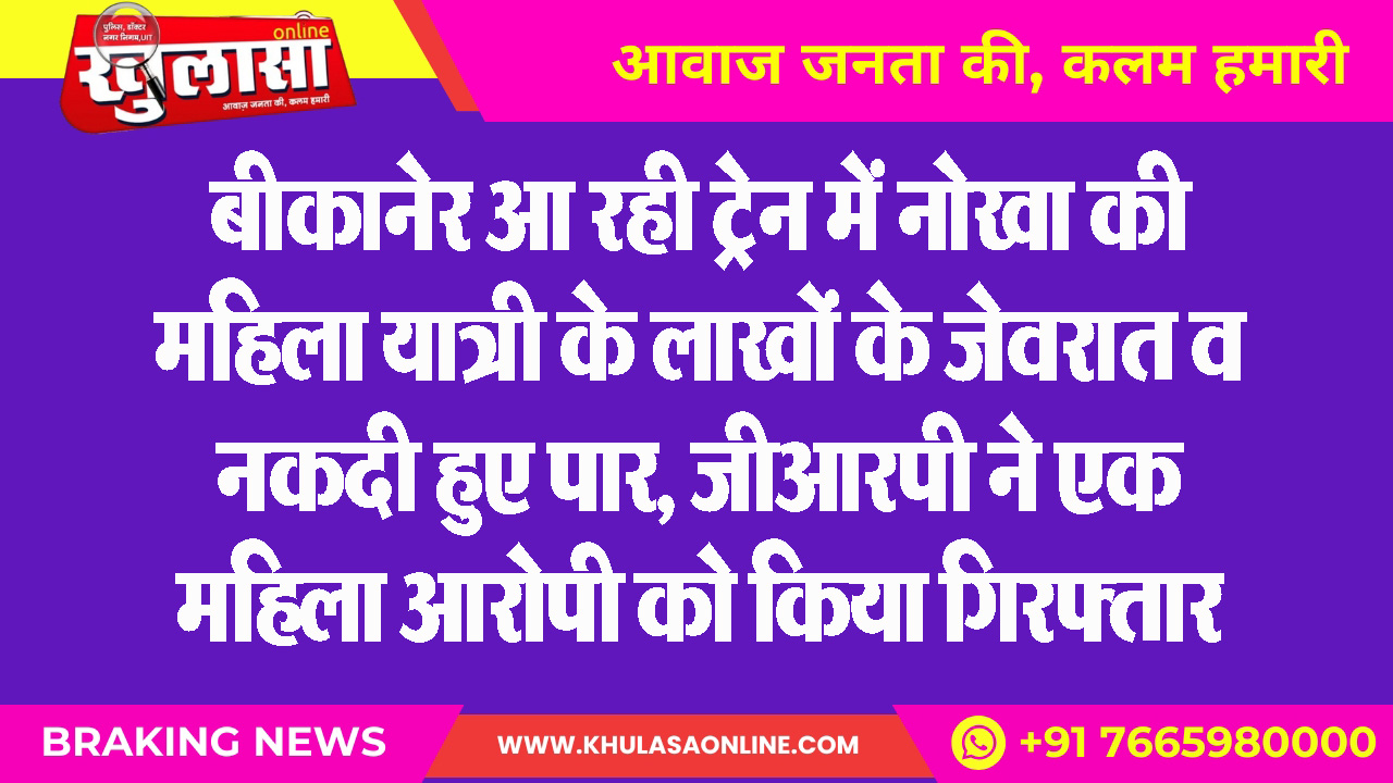 बीकानेर आ रही ट्रेन में नोखा की महिला यात्री के लाखों के जेवरात व नकदी हुए पार, जीआरपी ने एक महिला आरोपी को किया गिरफ्तार