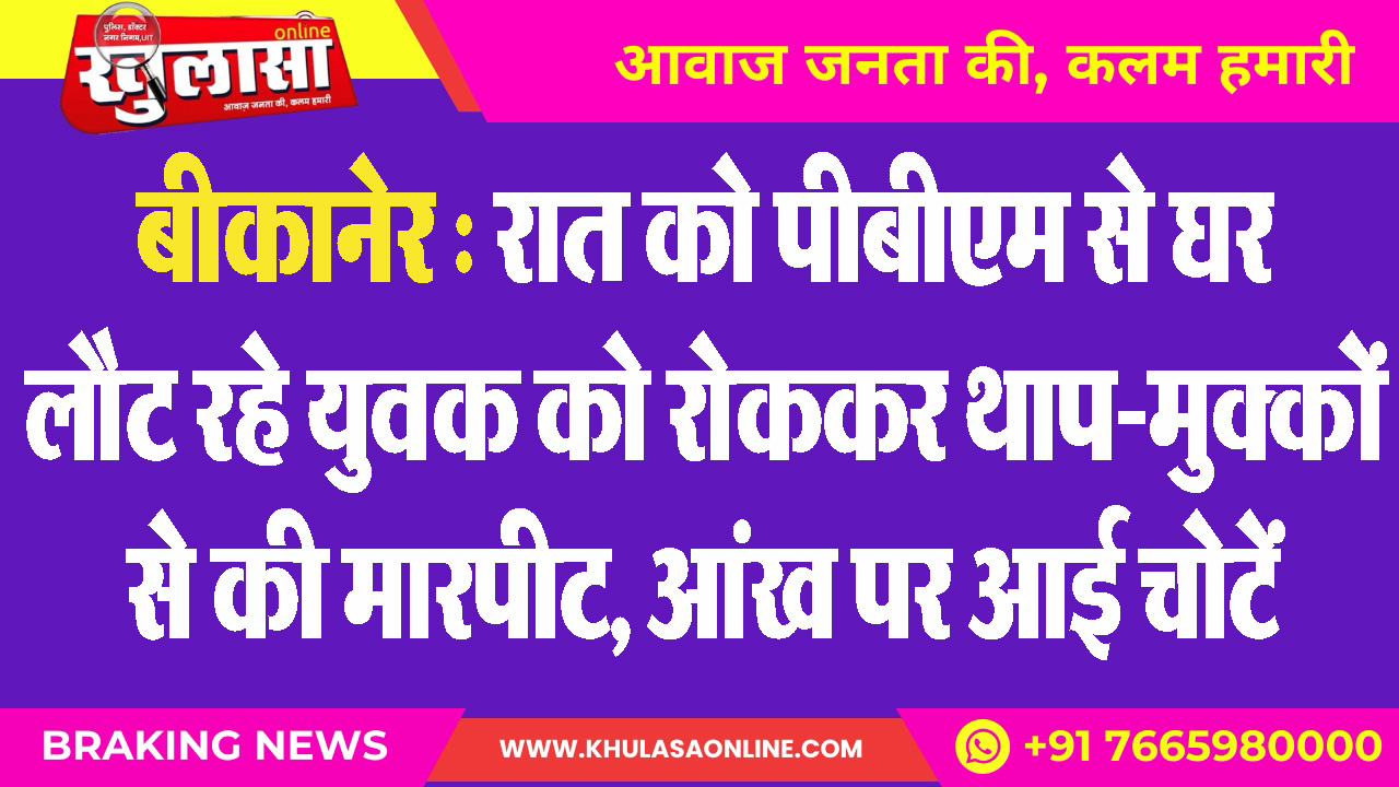 रात को पीबीएम से घर लौट रहे युवक को रोककर थाप-मुक्कों से की मारपीट, आंख पर आई चोटें