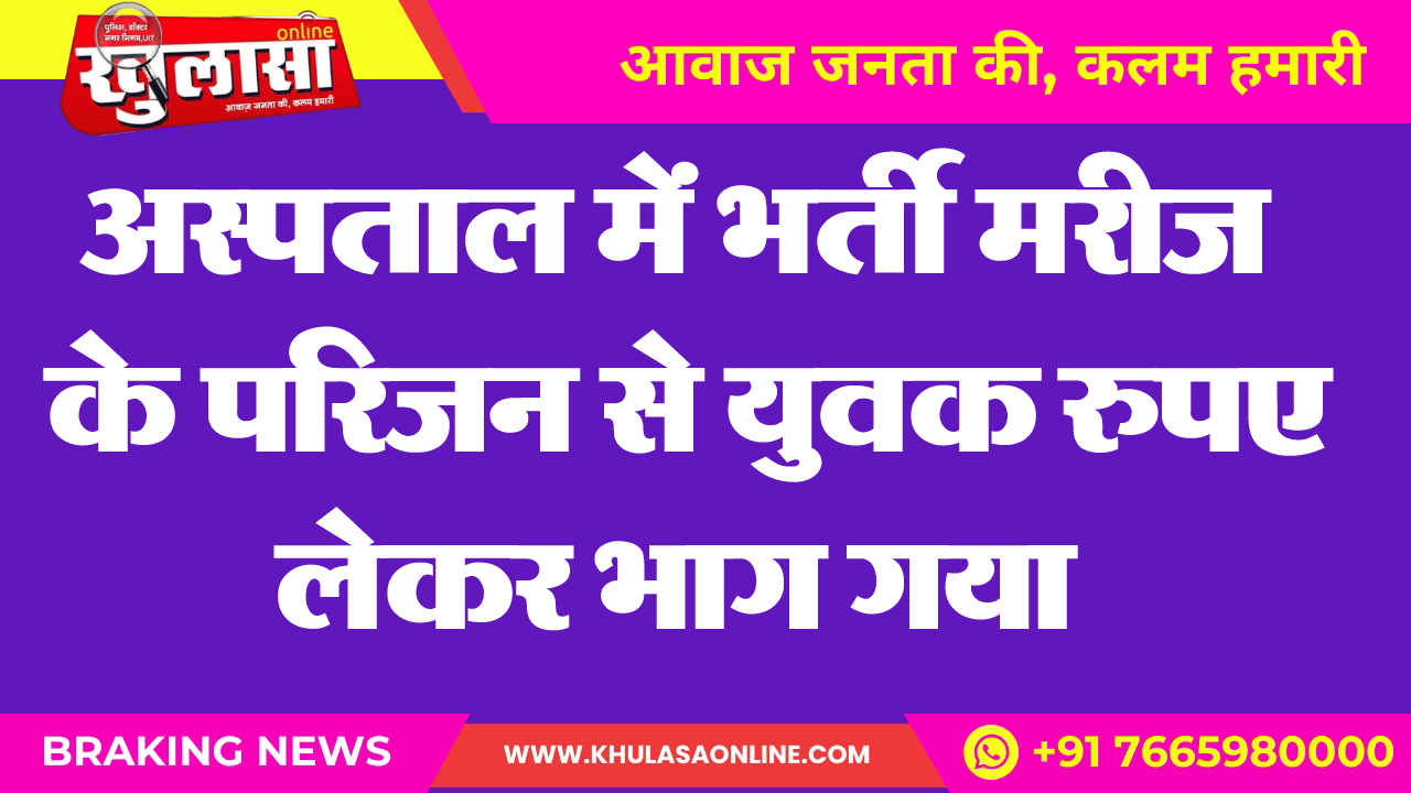 अस्पताल में भर्ती मरीज के परिजन से युवक रुपए लेकर भाग गया