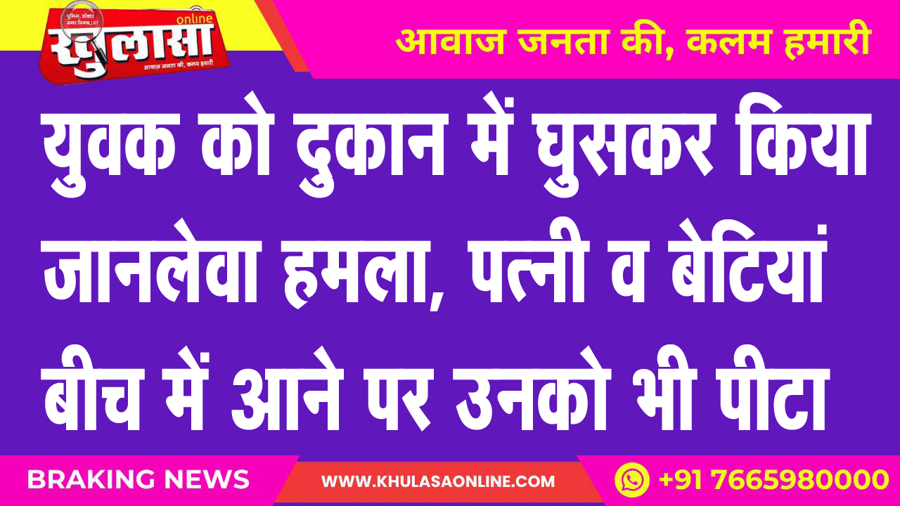युवक को दुकान में घुसकर किया जानलेवा हमला, पत्नी व बेटियां बीच में आने पर उनको भी पीटा