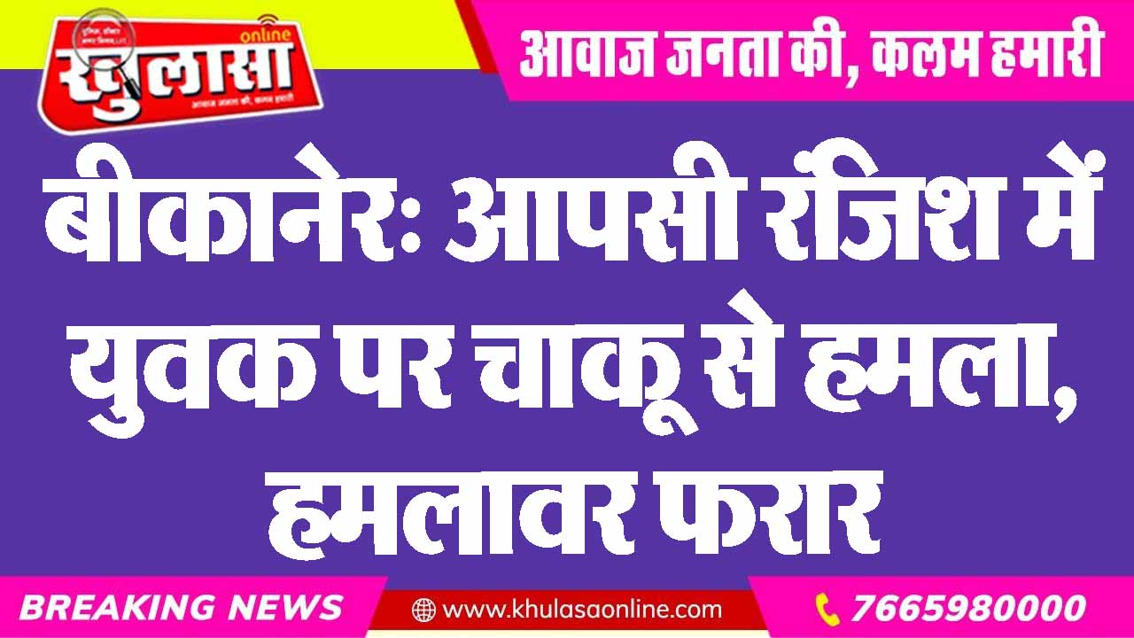 बीकानेर: आपसी रंजिश में युवक पर चाकू से हमला, हमलावर फरार