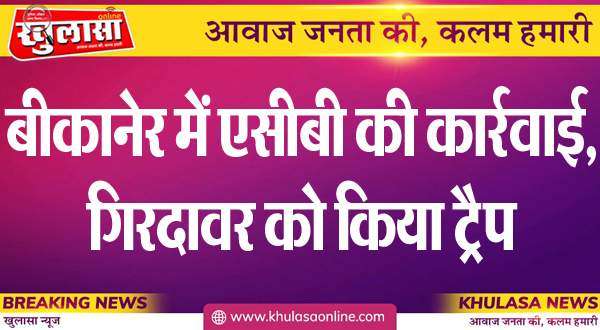खुलासा न्यूज बीकानेर। बीकानेर में एसीबी ने कार्रवाई करते हुए गिरदावर को रिश्वत लेते ट्रैप किया है। जानकारी के अनुसार एसीबी की टीम ने लूनकरणसर में गिरदावर लालचंद को तीन हजार रुपए की रिश्वत लेते ट्रैप किया है। एडीशन एसपी महावीर के निर्देशन में सीआई गुरमेल सिंह ने कार्रवाई को अंजाम दिया।