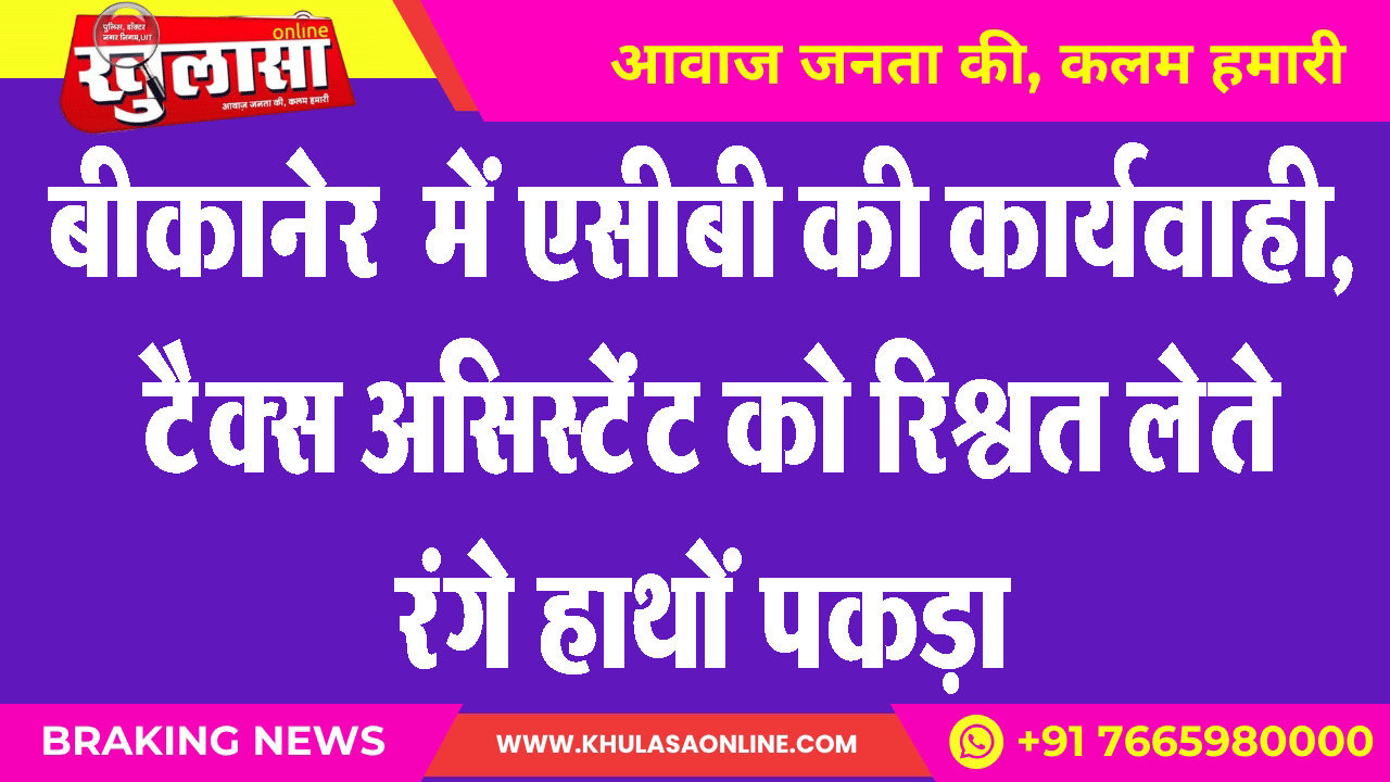 बीकानेर के वाणिज्य कर विभाग में एसीबी की कार्यवाही, टैक्स अस्टिेट को रिश्वत लेते रंगों हाथों पकड़ा