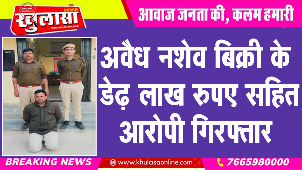 अवैध नशे व बिक्री के डेढ़ लाख रुपए सहित आरोपी गिरफ्तार