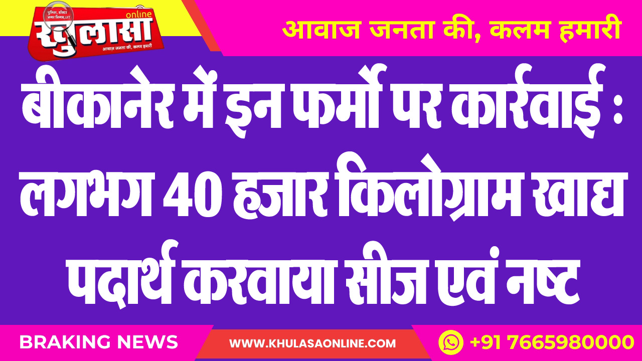 बीकानेर में इन फर्मो पर कार्रवाई : लगभग 40 हजार किलोग्राम खाद्य पदार्थ करवाया सीज एवं नष्ट