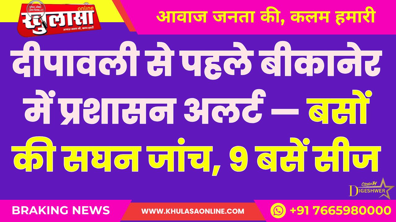 दीपावली से पहले बीकानेर में प्रशासन अलर्ट — बसों की सघन जांच, 9 बसें सीज