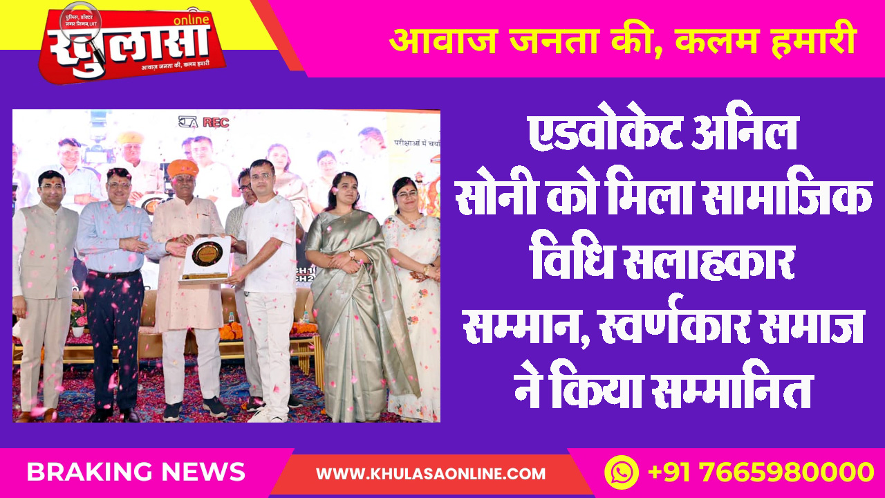 एडवोकेट अनिल सोनी को मिला सामाजिक विधि सलाहकार सम्मान, स्वर्णकार समाज ने किया सम्मानित
