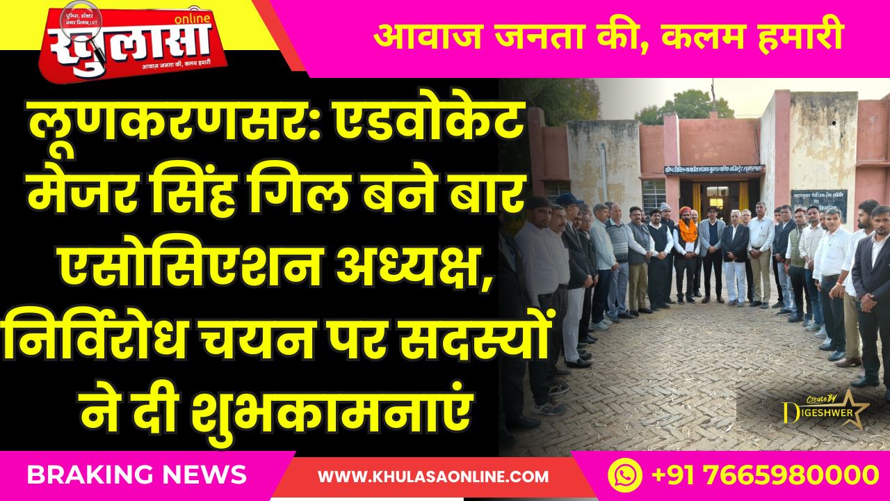 लूणकरणसर: एडवोकेट मेजर सिंह गिल बने बार एसोसिएशन अध्यक्ष, निर्विरोध चयन पर सदस्यों ने दी शुभकामनाएं