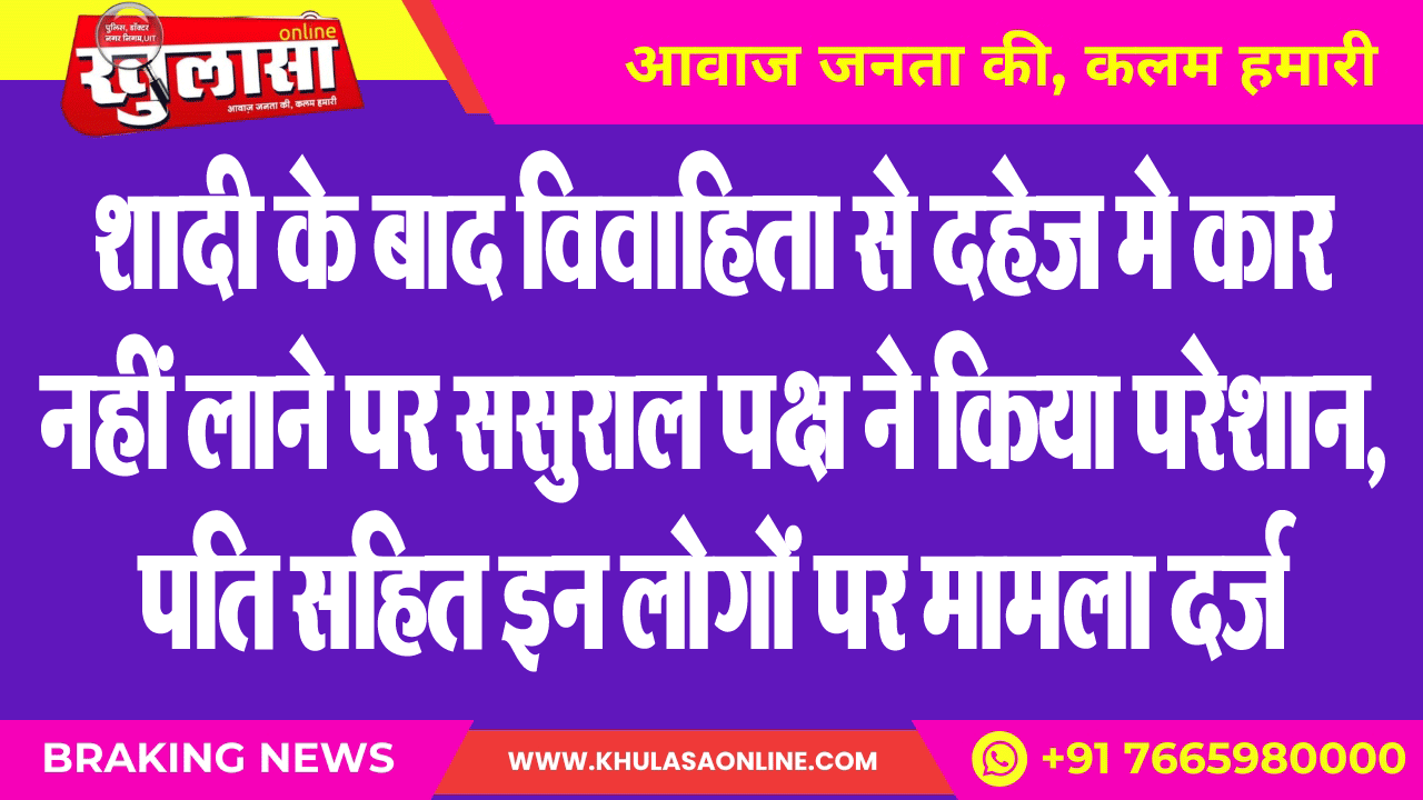 शादी के बाद विवाहिता से दहेज मे कार नहीं लाने पर ससुराल पक्ष ने किया परेशान, पति सहित इन लोगों पर मामला दर्ज