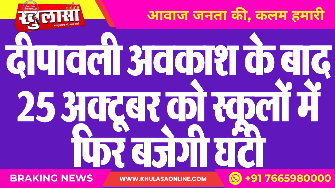दीपावली अवकाश के बाद 25 अक्टूबर को स्कूलों में फिर बजेगी घंटी