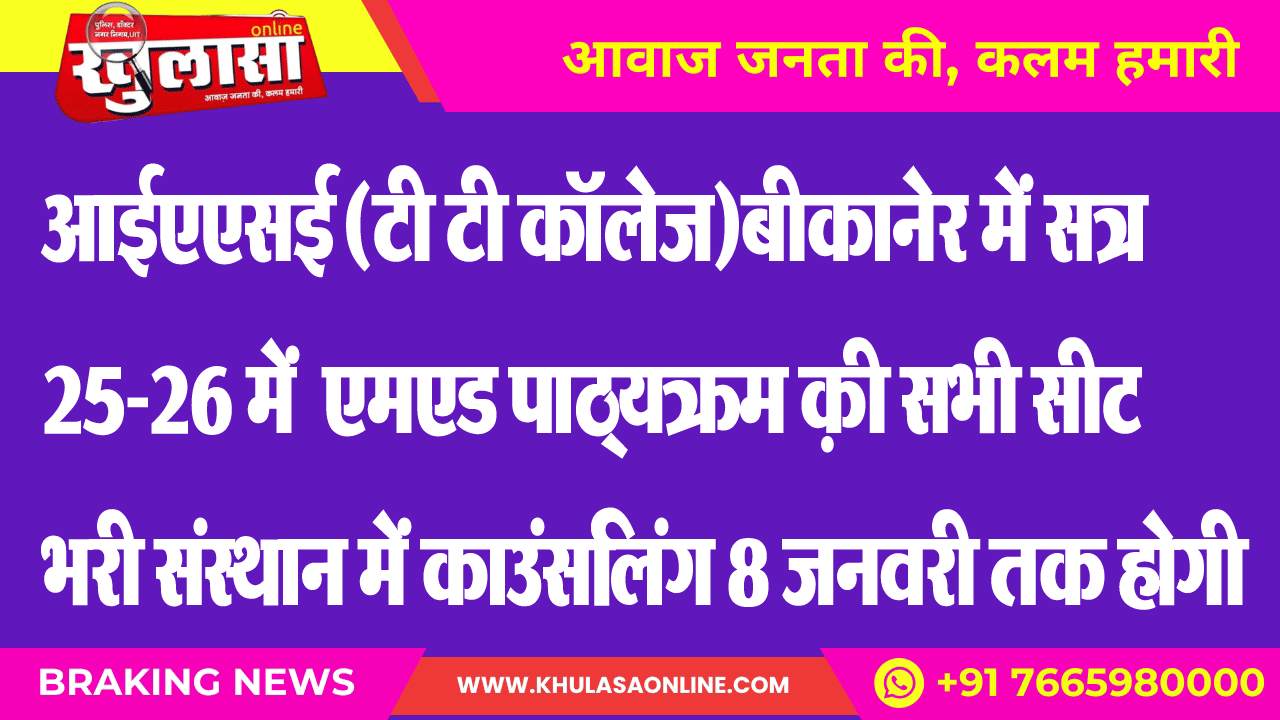 आईएएसई (टी टी कॉलेज)बीकानेर में सत्र 25-26 में एमएडपाठ्यक्रम क़ी सभी सीट भरी संस्थान में काउंसलिंग 8 जनवरी तक होगी