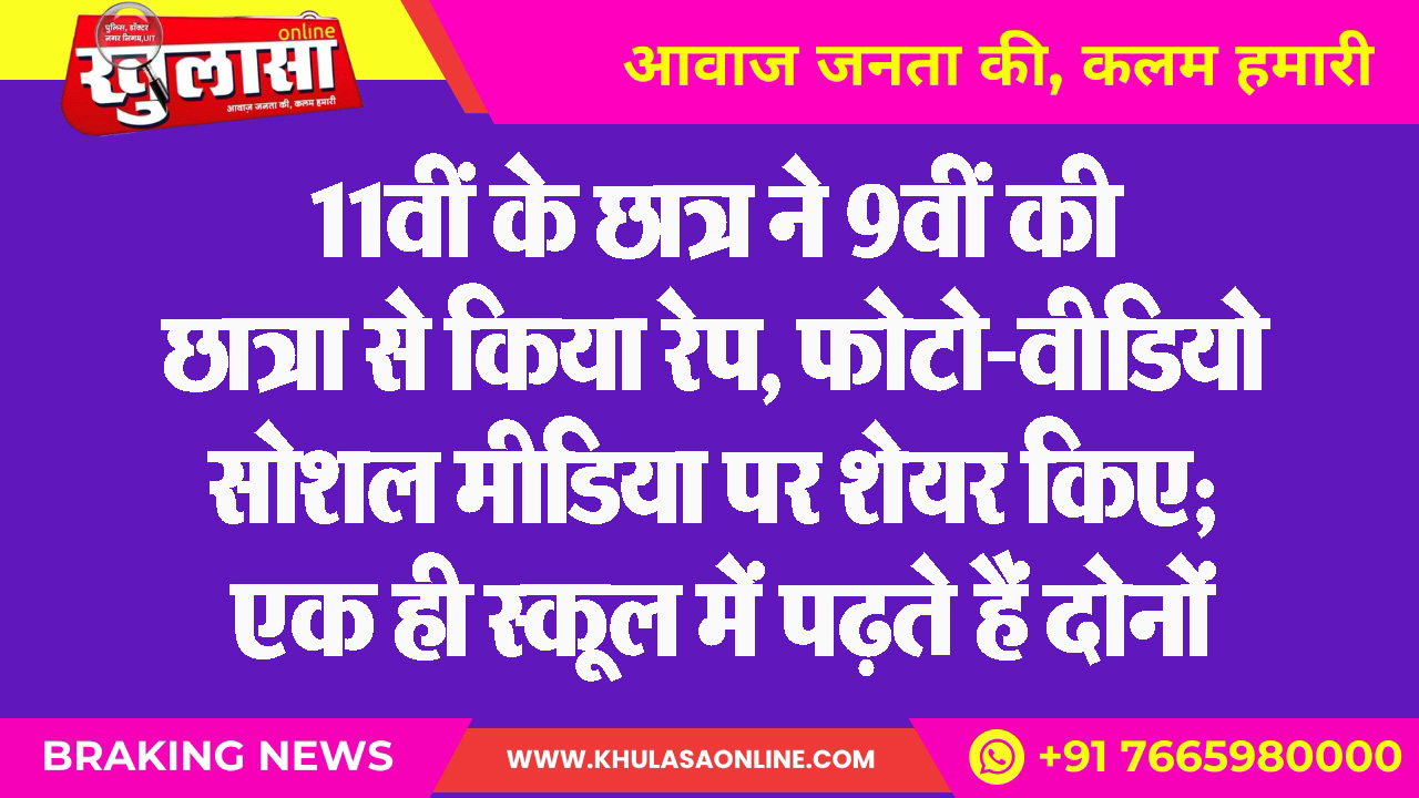 11वीं के छात्र ने 9वीं की छात्रा से किया रेप, फोटो-वीडियो सोशल मीडिया पर शेयर किए; एक ही स्कूल में पढ़ते हैं दोनों