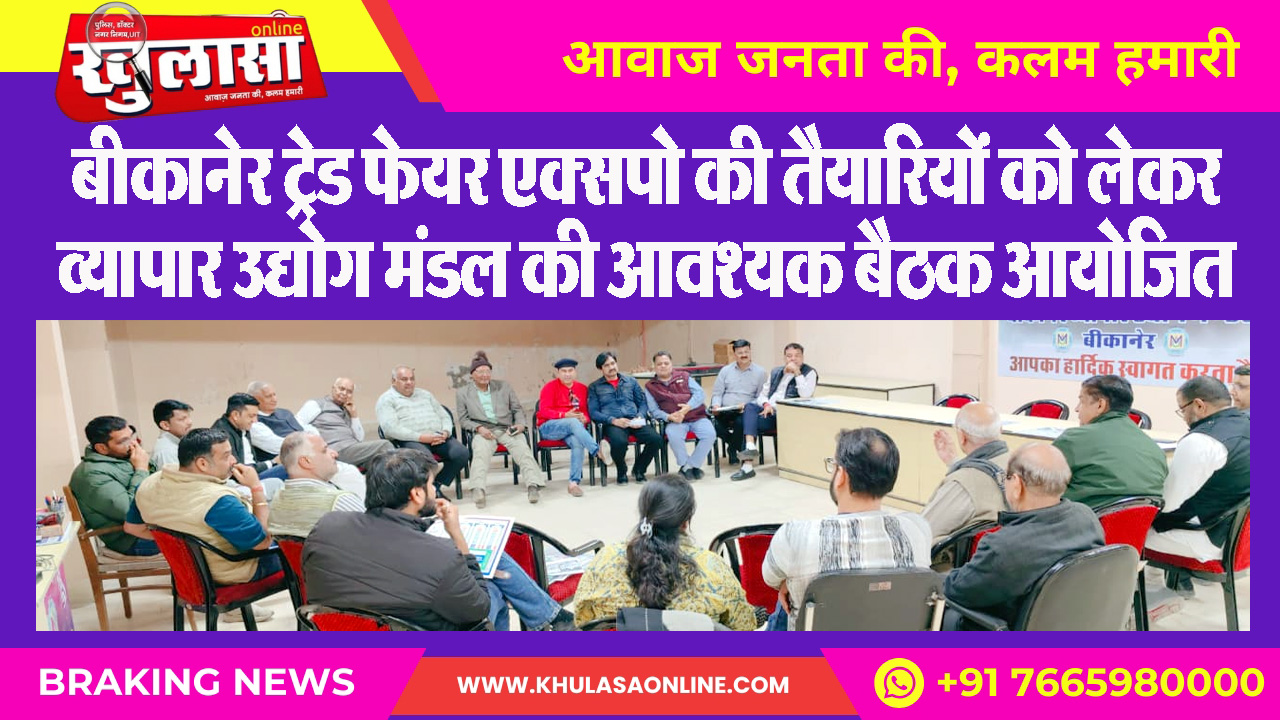बीकानेर ट्रेड फेयर एक्सपो की तैयारियों को लेकर व्यापार उद्योग मंडल की आवश्यक बैठक आयोजित