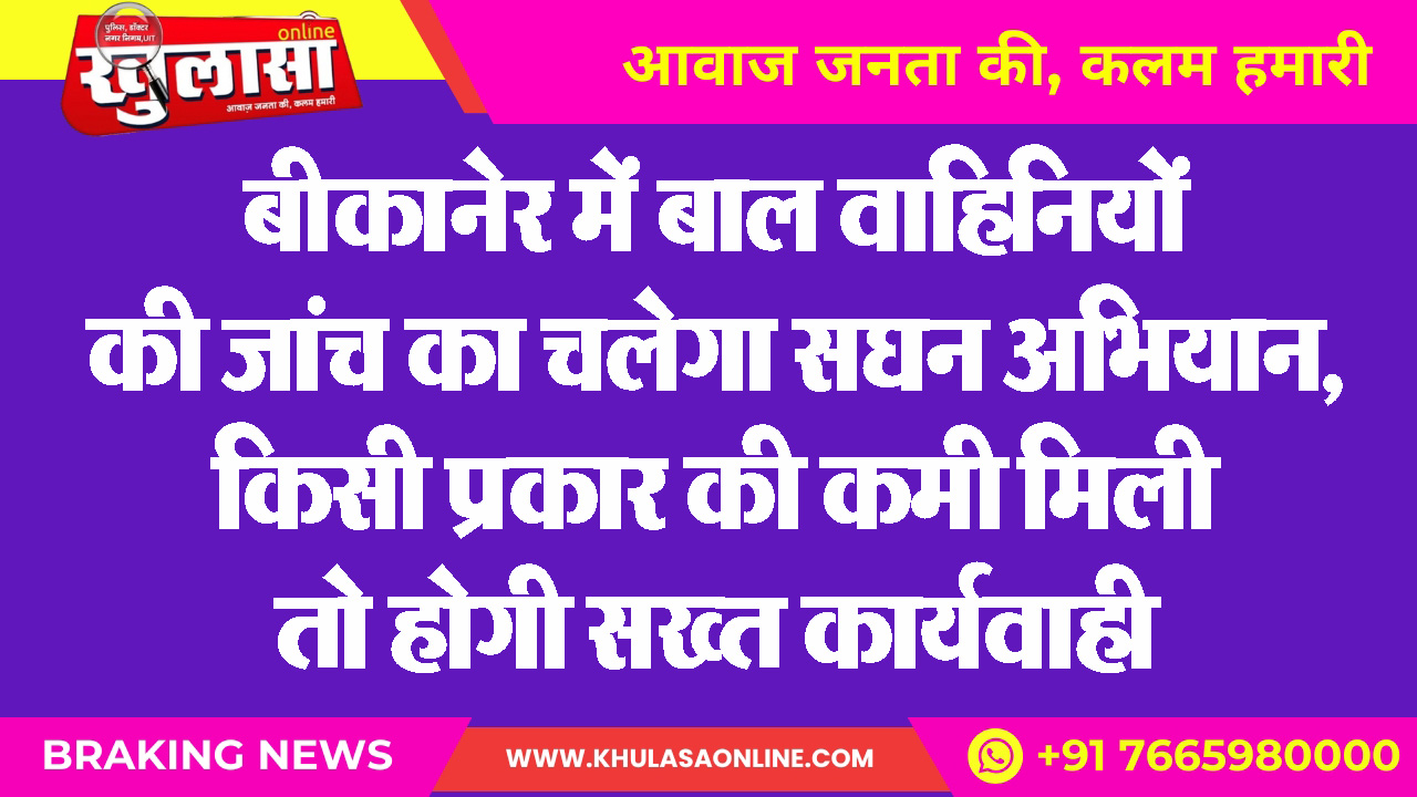 बीकानेर में बाल वाहिनियों की जांच का चलेगा सघन अभियान, किसी प्रकार की कमी मिली तो होगी सख्त कार्यवाही