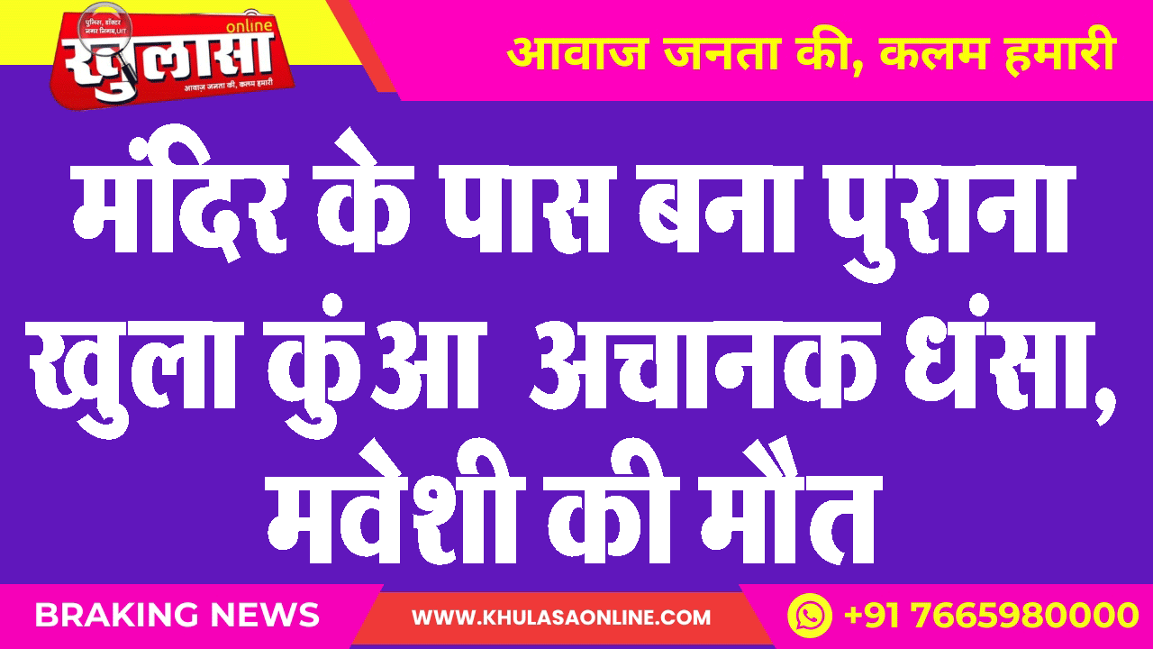 मंदिर के पास बना पुराना खुला कुंआ अचानक धंसा,मवेशी की मौत