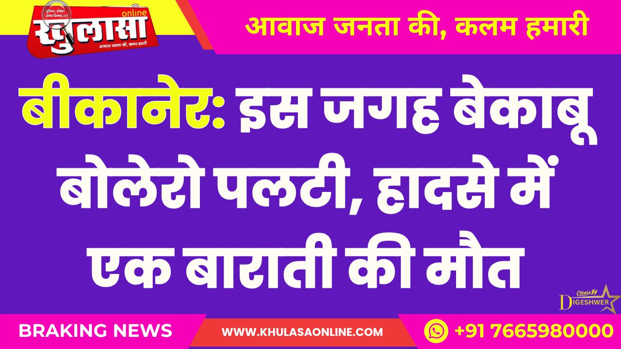बीकानेर: में इस जगह बेकाबू बोलेरो पलटी, हादसे में एक बाराती की मौत