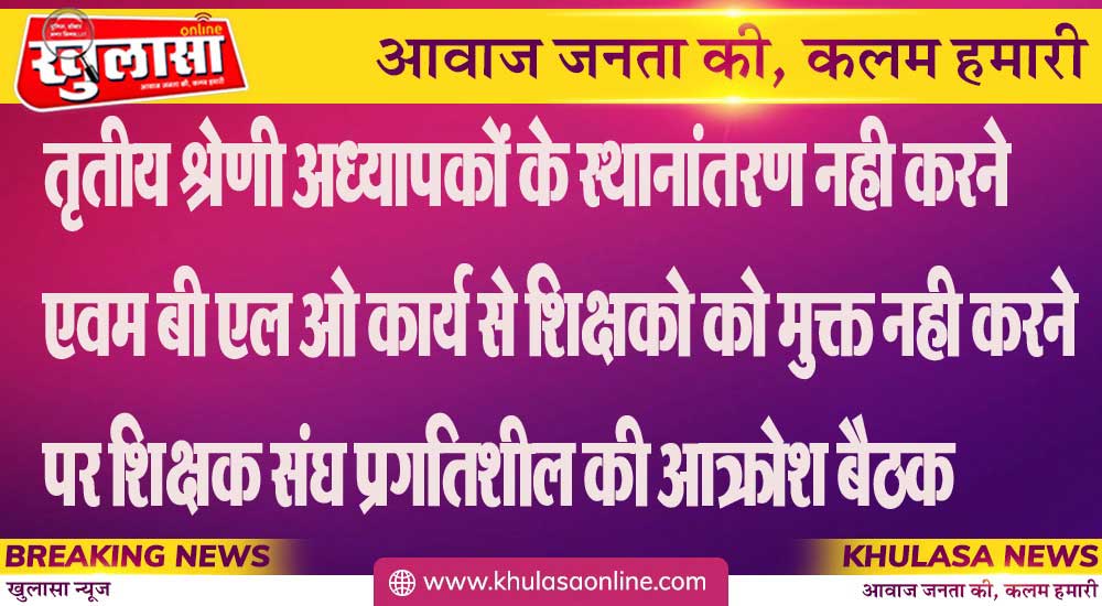 तृतीय श्रेणी अध्यापकों के स्थानांतरण नही करने एवम बी एल ओ कार्य से शिक्षको को मुक्त नही करने पर शिक्षक संघ प्रगतिशील की आक्रोश बैठक