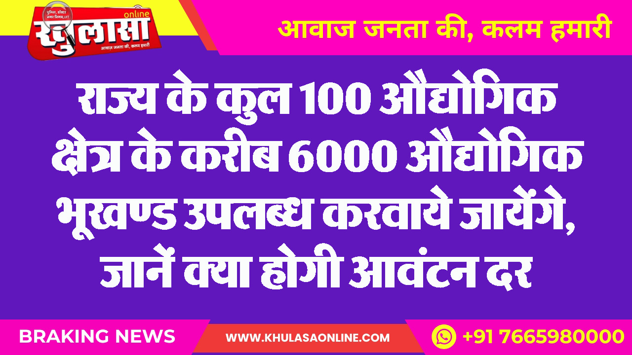 राज्य के कुल 100 औद्योगिक क्षेत्र के करीब 6000 औद्योगिक भूखण्ड उपलब्ध करवाये जायेंगे, जानें क्या होगी आवंटन दर