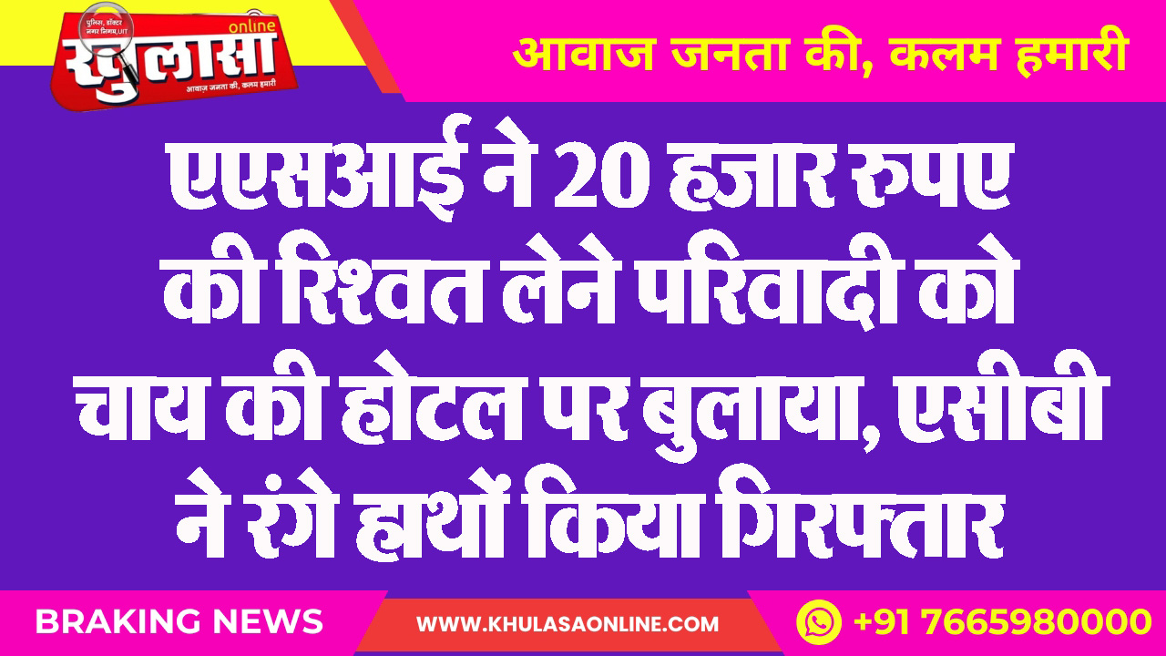 एएसआई ने 20 हजार रुपए की रिश्वत लेने परिवादी को चाय की होटल पर बुलाया, एसीबी ने रंगे हाथों किया गिरफ्तार
