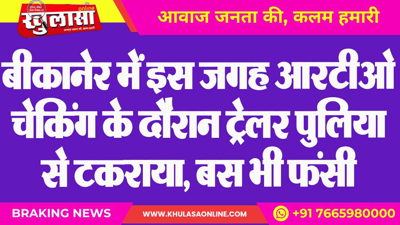 बीकानेर में इस जगह आरटीओ चेकिंग के दौरान ट्रेलर पुलिया से टकराया, बस भी फंसी