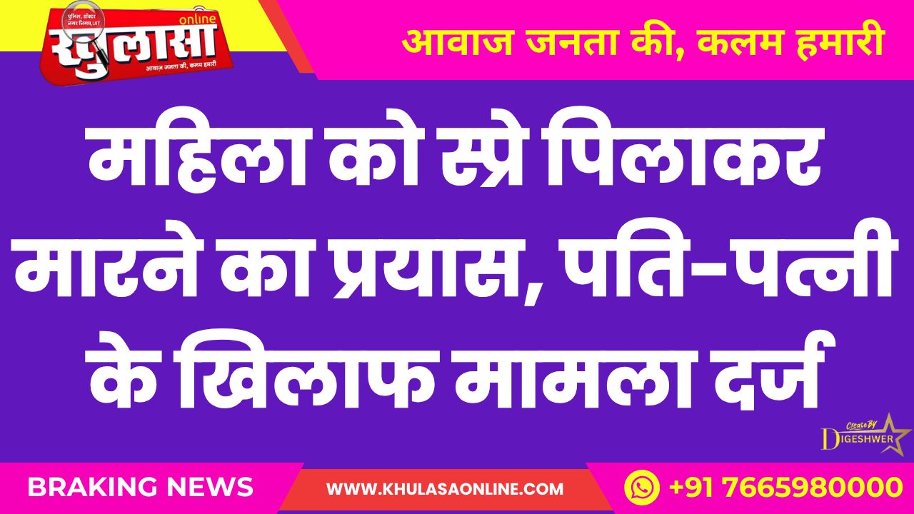 महिला को स्प्रे पिलाकर मारने का प्रयास, पति-पत्नी के खिलाफ मामला दर्ज
