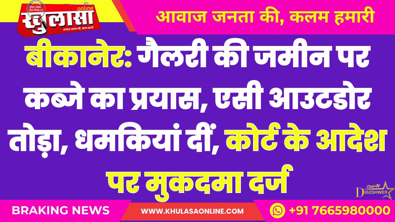 बीकानेर: गैलरी की जमीन पर कब्जे का प्रयास, एसी आउटडोर तोड़ा, धमकियां दीं, कोर्ट के आदेश पर मुकदमा दर्ज
