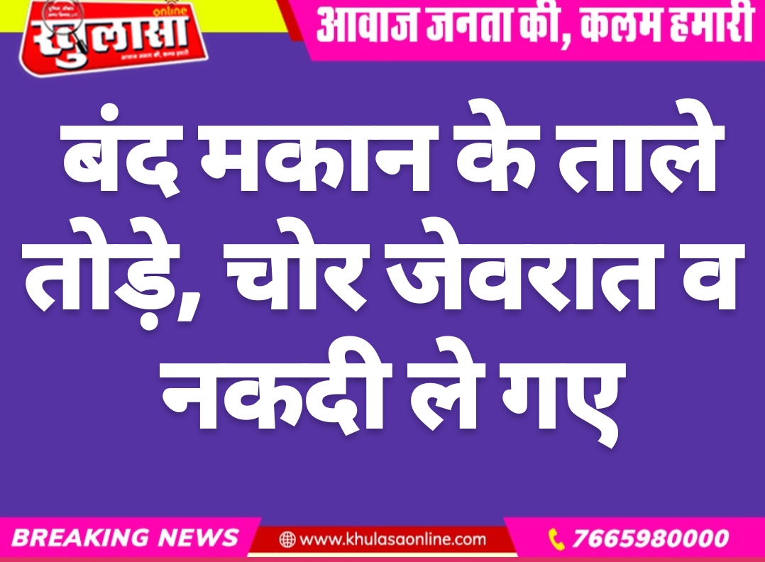 बंद मकान के ताले तोड़े, चोर जेवरात व नकदी ले गए