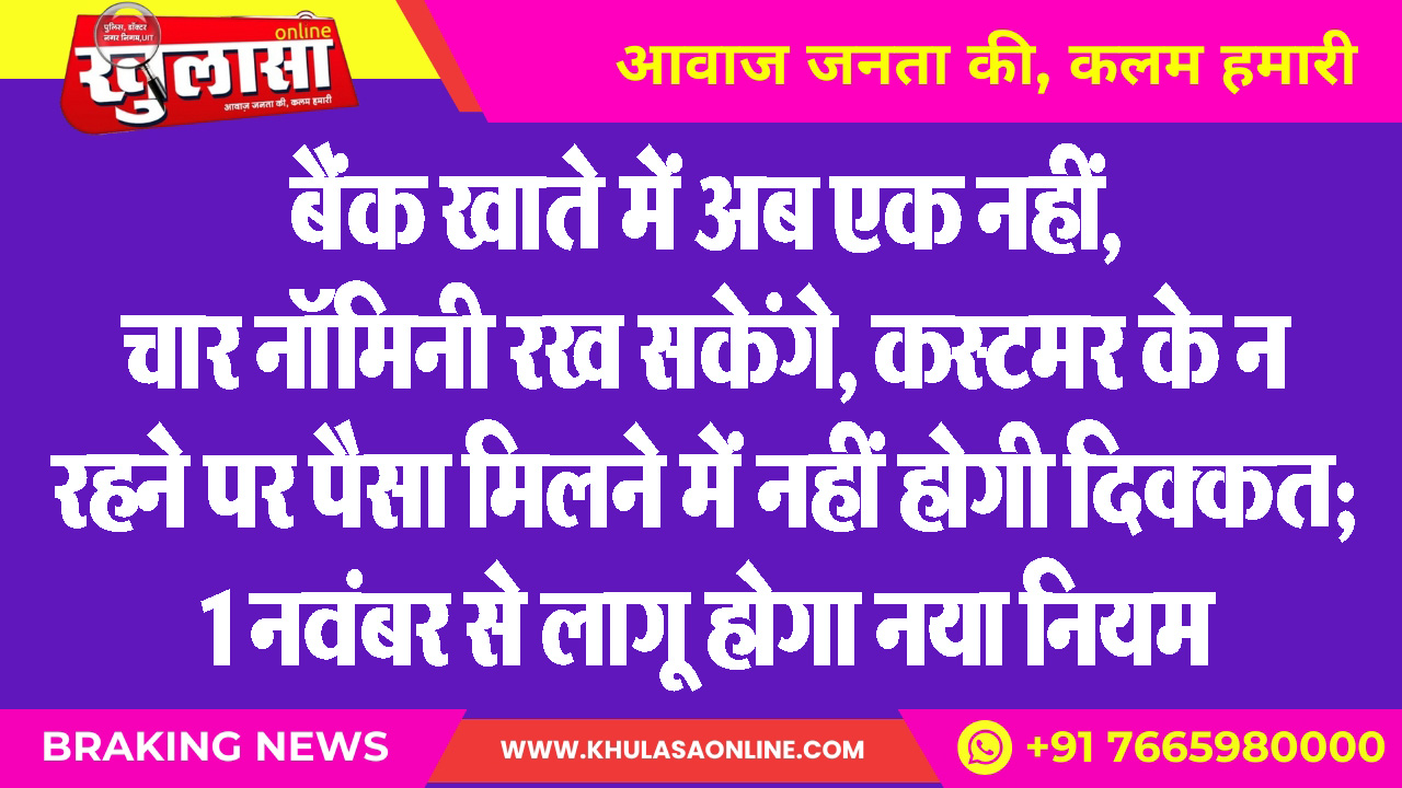 बैंक खाते में अब एक नहीं, चार नॉमिनी रख सकेंगे, कस्टमर के न रहने पर पैसा मिलने में नहीं होगी दिक्कत; 1 नवंबर से लागू होगा नया नियम