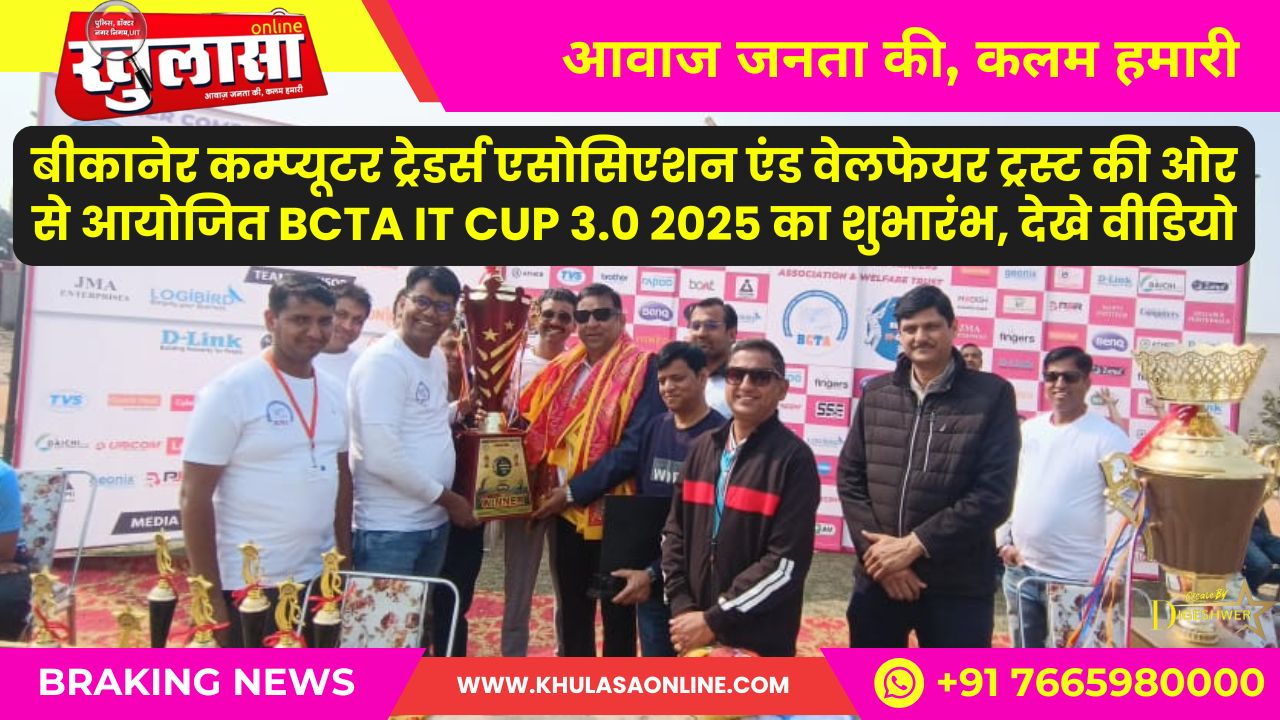 बीकानेर कम्प्यूटर ट्रेडर्स एसोसिएशन एंड वेलफेयर ट्रस्ट की ओर से आयोजित BCTA IT CUP 3.0 2025 का शुभारंभ, देखे वीडियो