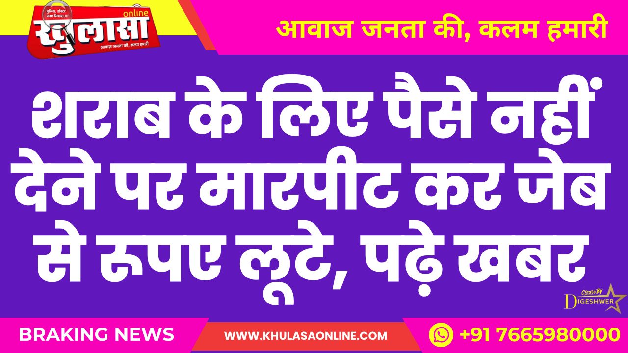 शराब के लिए पैसे नहीं देने पर मारपीट कर जेब से रूपए लूटे, पढ़े खबर