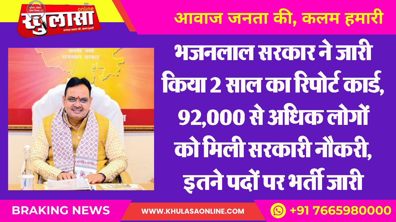 भजनलाल सरकार ने जारी किया 2 साल का रिपोर्ट कार्ड, 92,000 से अधिक लोगों को मिली सरकारी नौकरी, इतने पदों पर भर्ती जारी