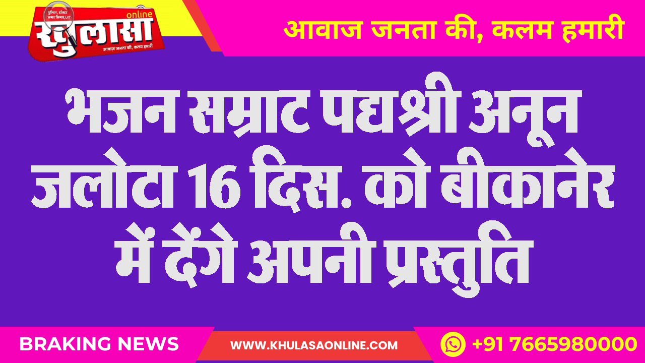 भजन सम्राट पद्यश्री अनून जलोटा 16 दिस. को बीकानेर में देंगे अपनी प्रस्तुति