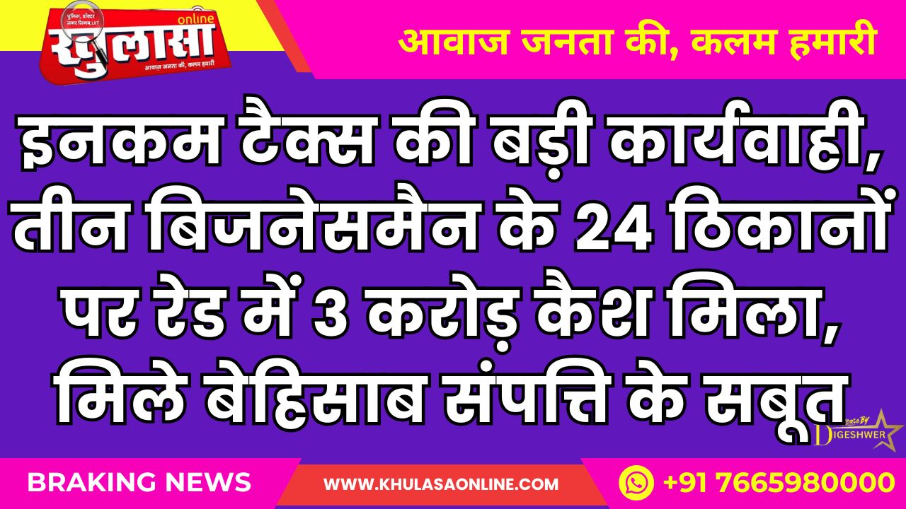 इनकम टैक्स की बड़ी कार्यवाही, तीन बिजनेसमैन के 24 ठिकानों पर रेड में 3 करोड़ कैश मिला, मिले बेहिसाब संपत्ति के सबूत