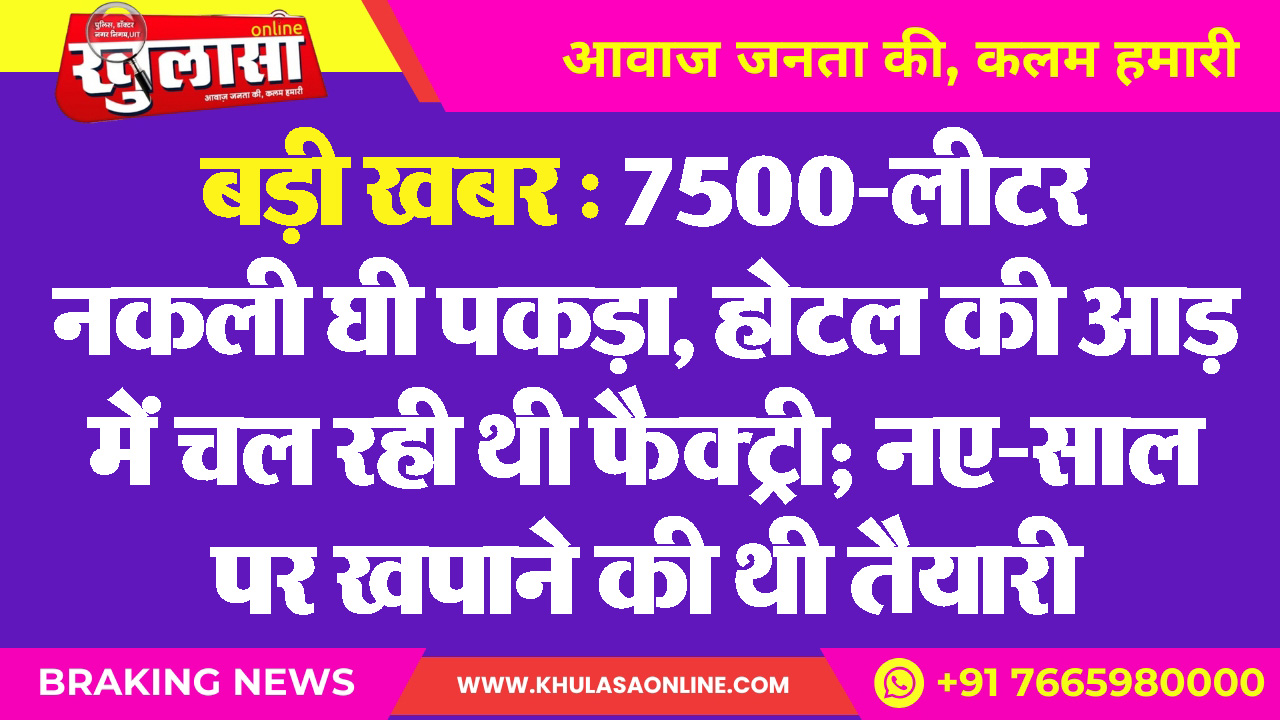 बड़ी खबर : 7500-लीटर नकली घी पकड़ा, होटल की आड़ में चल रही थी फैक्ट्री; नए-साल पर खपाने की थी तैयारी