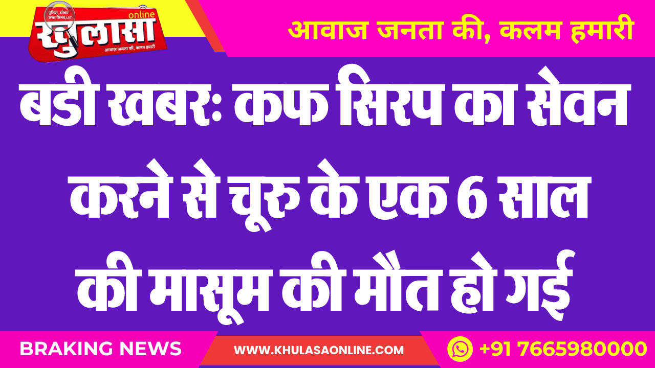बडी खबर: कफ सिरप का सेवन करने से चूरु के एक 6 साल की मासूम की मौत हो गई