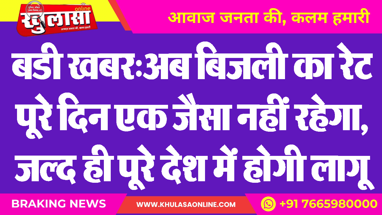 बडी खबर:अब बिजली का रेट पूरे दिन एक जैसा नहीं रहेगा, जल्द ही पूरे देश में होगी लागू
