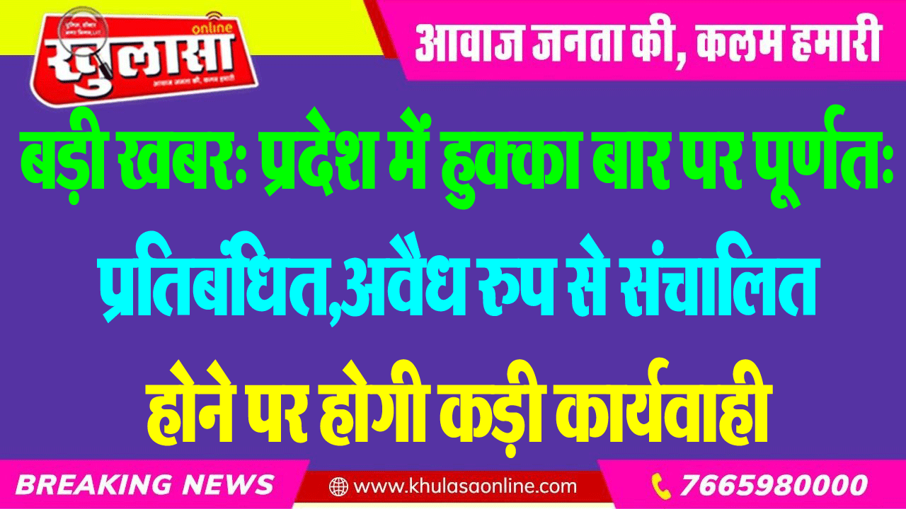 बड़ी खबर: प्रदेश में हुक्का बार पर पूर्णत: प्रतिबंधित,अवैध रुप से संचालित होने पर होगी कड़ी कार्यवाही