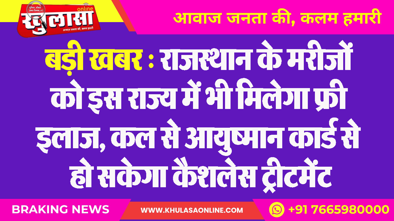 बड़ी खबर : राजस्थान के मरीजों को इस राज्य में भी मिलेगा फ्री इलाज, कल से आयुष्मान कार्ड से हो सकेगा कैशलेस ट्रीटमेंट