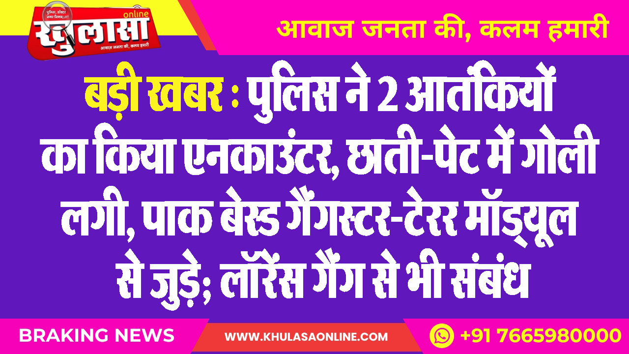 बड़ी खबर : पुलिस ने 2 आतंकियों का किया एनकाउंटर, छाती-पेट में गोली लगी, पाक बेस्ड गैंगस्टर-टेरर मॉड्यूल से जुड़े; लॉरेंस गैंग से भी संबंध