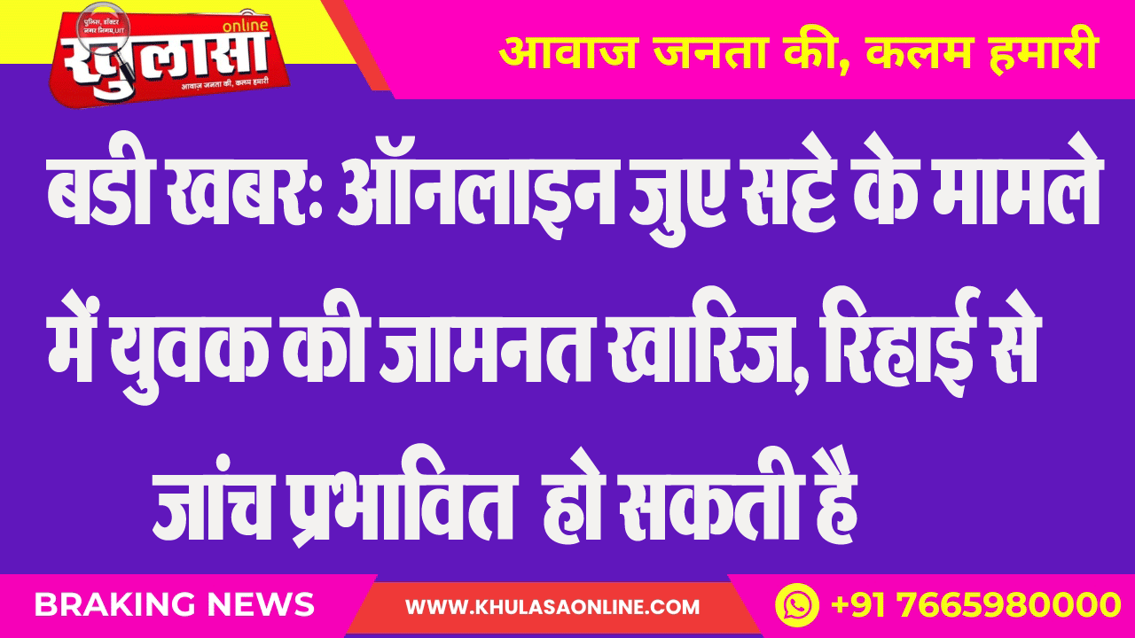 बडी खबर: ऑनलाइन जुए सट्टे के मामले में युवक की जामनत खारिज, रिहाई से जांच प्रभावित हो सकती है