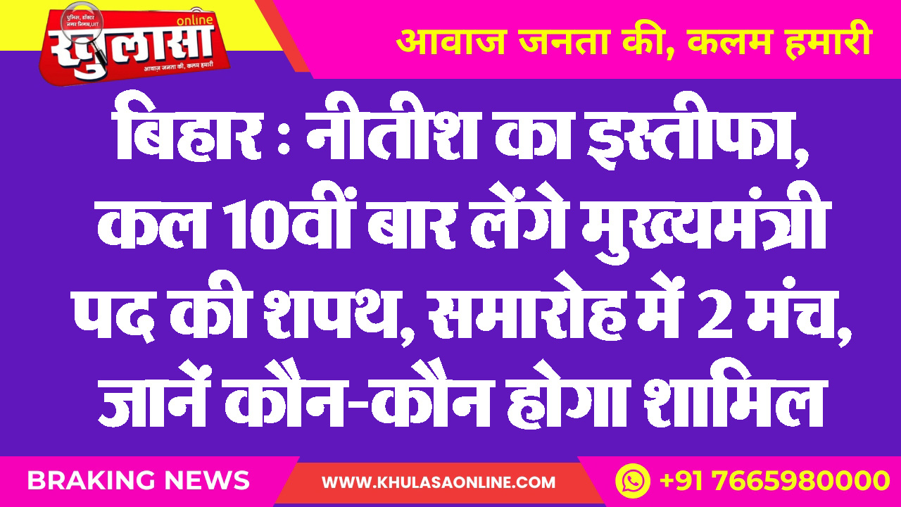 बिहार : नीतीश का इस्तीफा, कल 10वीं बार लेंगे मुख्यमंत्री पद की शपथ, समारोह में 2 मंच, जानें कौन-कौन होगा शामिल
