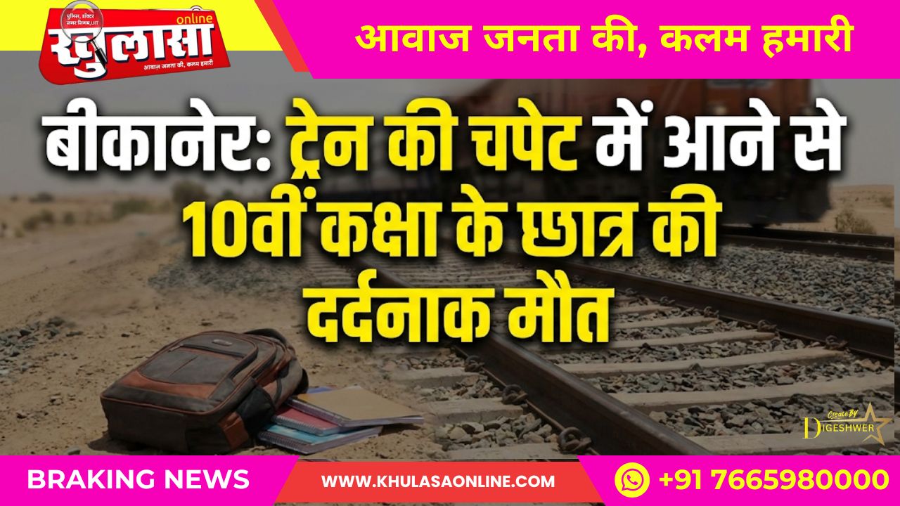 बीकानेर: ट्रेन की चपेट में आने से 10वीं कक्षा के छात्र की दर्दनाक मौत