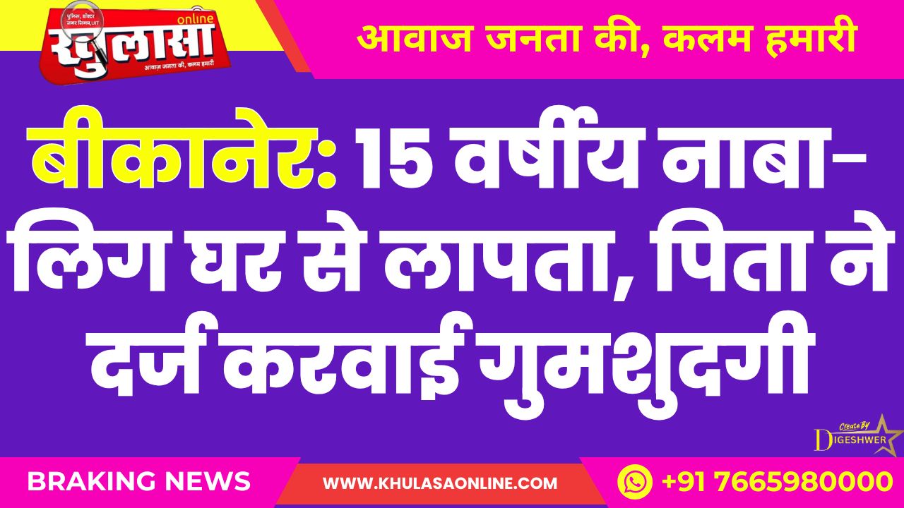 बीकानेर: 15 वर्षीय नाबालिग घर से लापता, पिता ने दर्ज करवाई गुमशुदगी